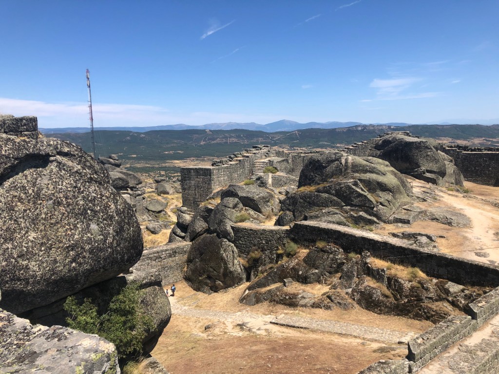 The ice cream was nice though, especially as the temperature was rising and it was nice to be back in the car with the AC on again, and heading onwards to Monsanto. The countryside has a real wilderness feel about it as you approach the easternmost part of Portugal. But eventually the mountain of Monsanto came into view and we drove onwards and into the small village at its base, looking up towards the Boulder strewn mountain and upper village covered in terracotta rooftops.
