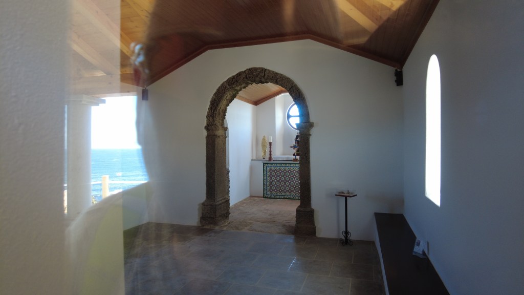 The restoration of the chapel is really very good and is of high quality. It also has amazing views over the coast and inlet to the bay. The porch area was a blissful place with its shade and cooling breeze. It was unfortunately locked but we had a peek through the windows and managed to snap a picture. Money well spent!