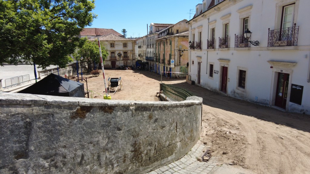 During our trek through the lovely narrow backstreets of the old town following directions, we were stopped by a guy from proceeding down the street to the square we were heading for and told we were not permitted further. It looked like they had covered the street in dirt and soil, and thought it was probably due to repairing the cobbles (calçada). However, later after the meal while climbing up to the castle it became clear that the dirt was covering the calçada and it was actually a film set for a period production.