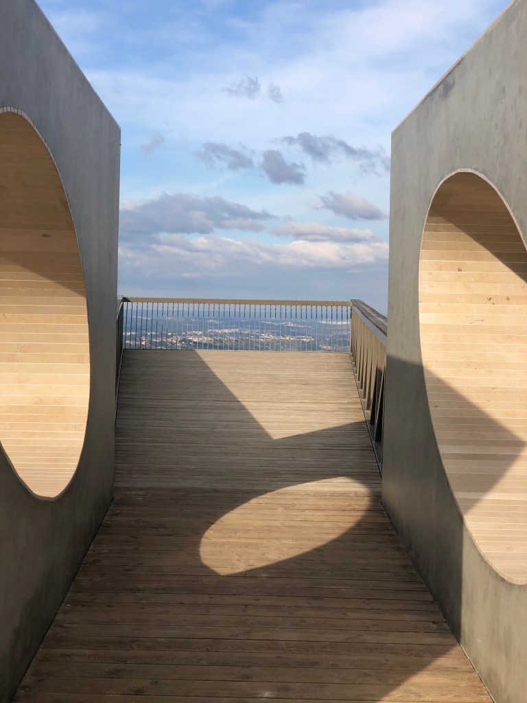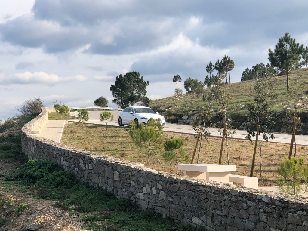 The structure now standing has really transformed a generic parking space next to EM506 into a true place of contemplation. The viewpoint, by architect Eusébio Calvário, extends beyond the edge of the mountain range and has a fantastic view over the village of Porto de Mós and the Lena valley, especially the Castle of Porto de Mós. The surrounding area has also been enhanced with seating and picnic tables in smooth stone, these along with planted trees and plants will make the place a lovely place to stop on a hot summer day in the future.