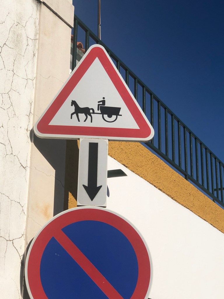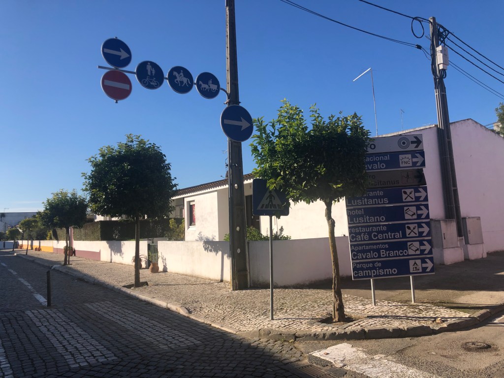 After the session, we were on the motorway and decided to drive down a part we haven’t taken before which heads for Torres Nova, which we have visited before. Annette checked our trusty copy of the ’Rough Guide to Portugal’ and discovered that a little further on towards the River Tagus was a small town with a real horse culture! We didn’t expect it was going to be busy this time of the year, and we had missed their main festival, but as we had never seen it, we decided to go and check it out.