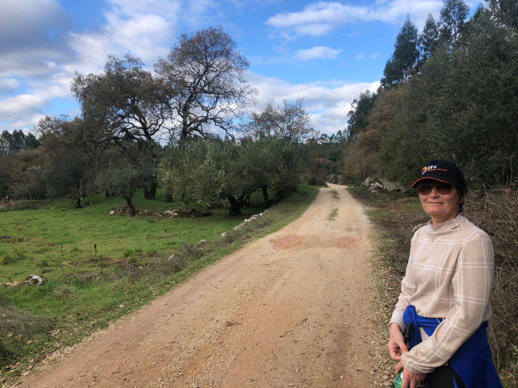 This meant a bottle of water and a bag of crisps had to provide the only sustenance over the entire distance. Doh! will definitely start taking some emergency chocolate bars and more liquids in future! On the plus side the walk was really enjoyable, apart from the flagging energy situation. The walk to the midway point was entirely off-road using only country tracks and we never saw a single soul on that stretch. Our return leg was along the Fatima to Nazerè pilgrims route which unfortunately is mostly along small roads, and walking on tarmac roads isn’t as fun as off-road.