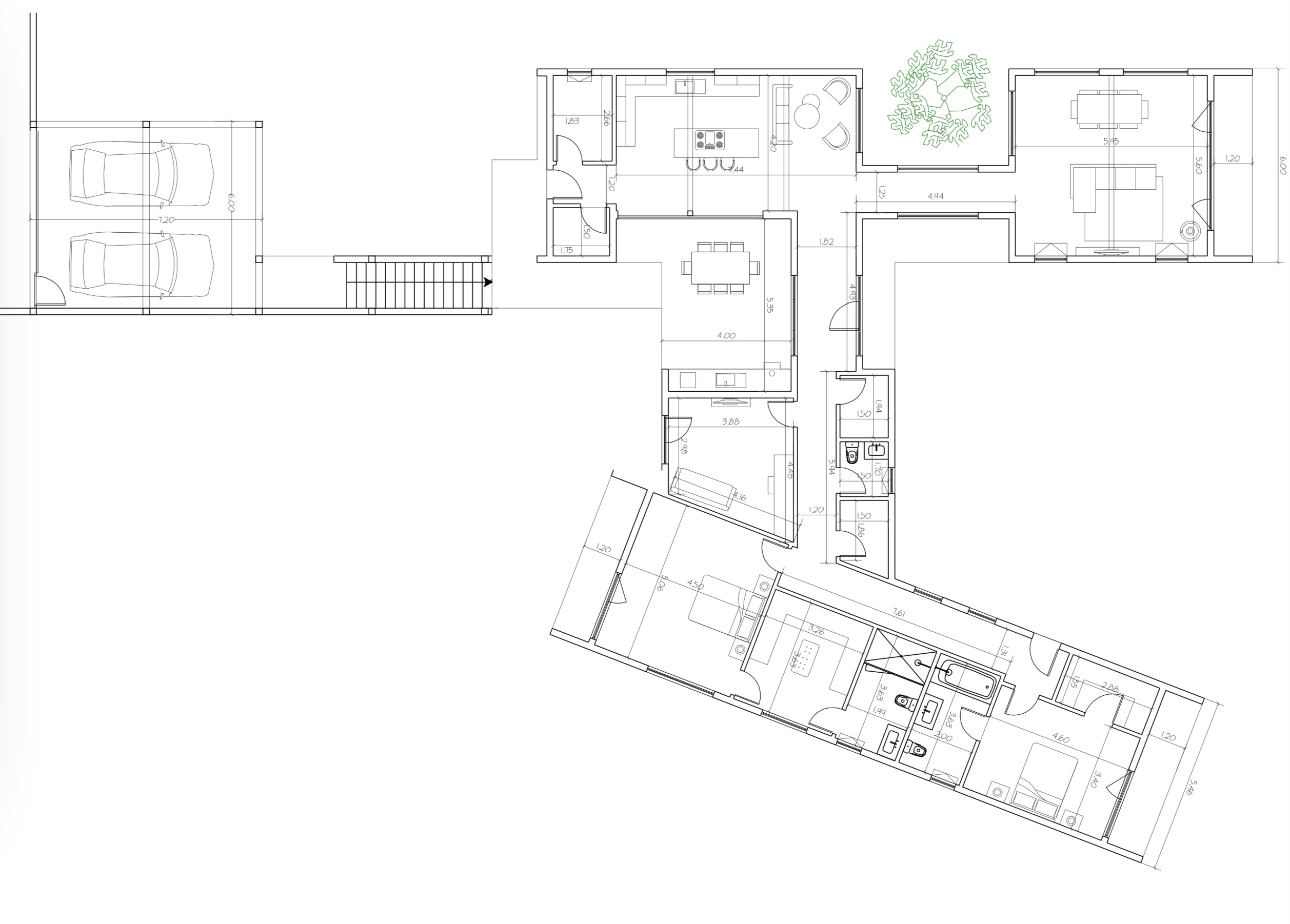 The architect then worked the design and calculations, and managed to maximize his lumber making best use of the longest lengths, and by reducing the halls and some rooms by a few centimeters, it all becomes easier from a build perspective and also reduces the material cost.