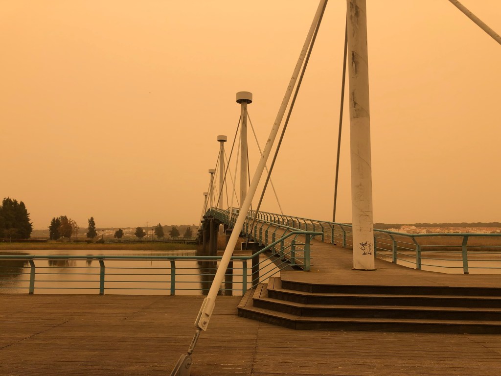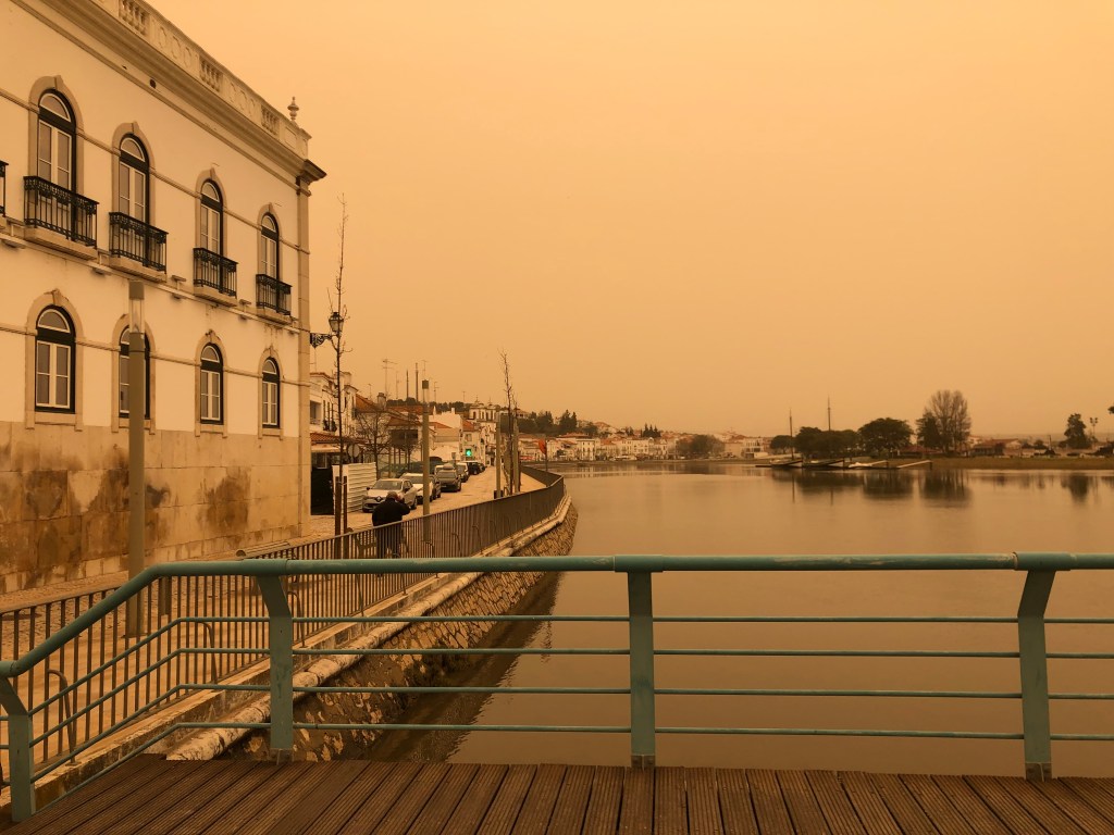 Just as it was time to return home the Sahara desert had kicked up a storm that was making its way across the Iberian peninsula and the journey was shrouded in an orange mist. Very surreal.
