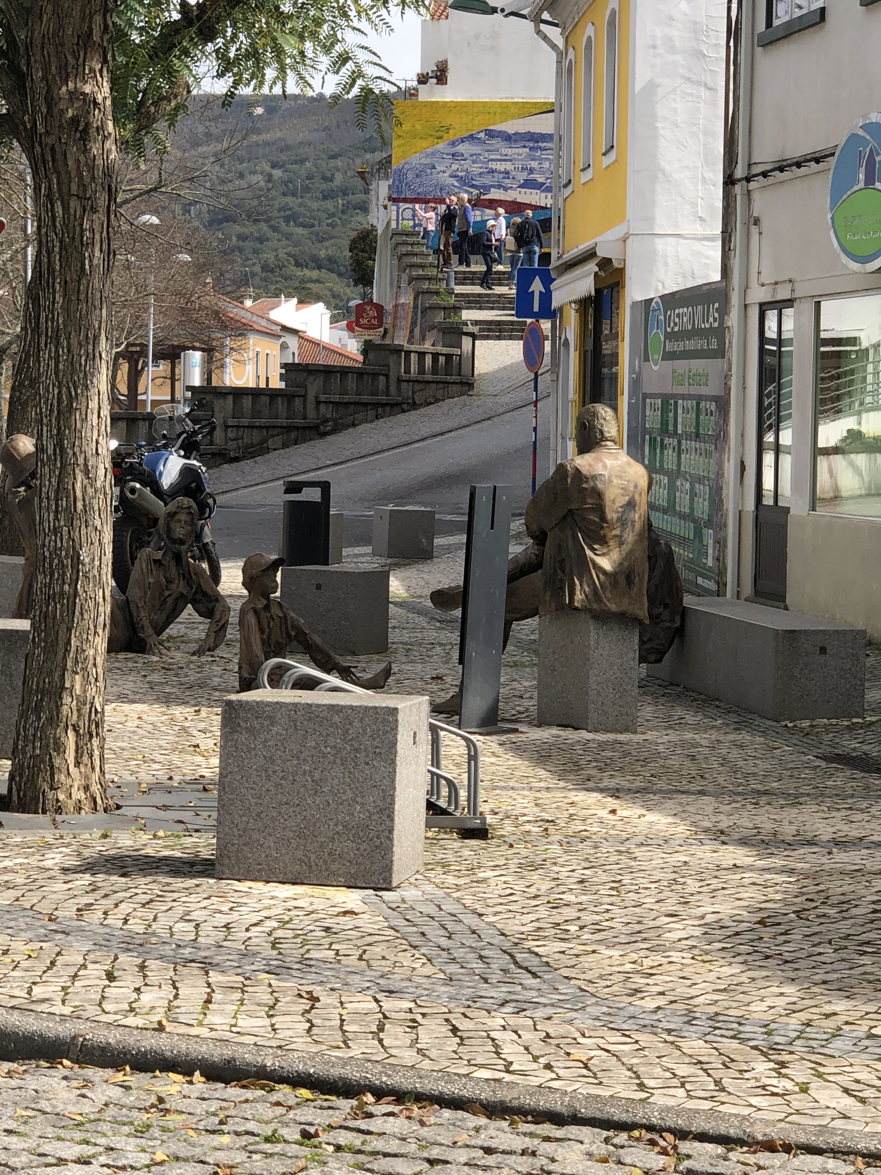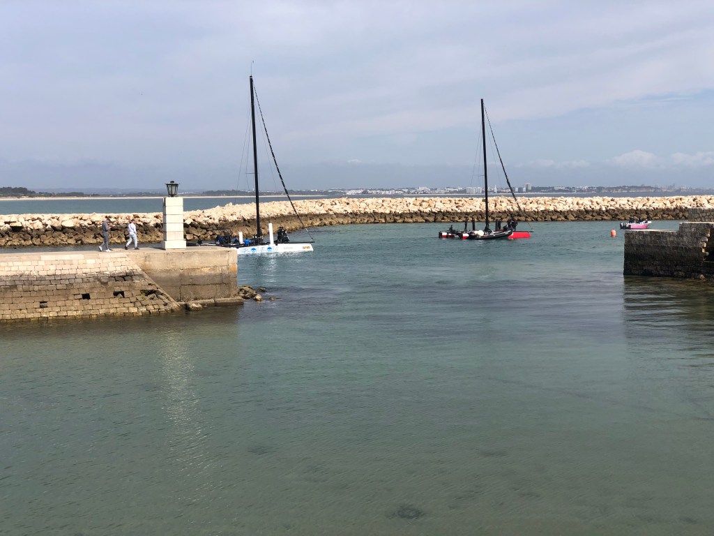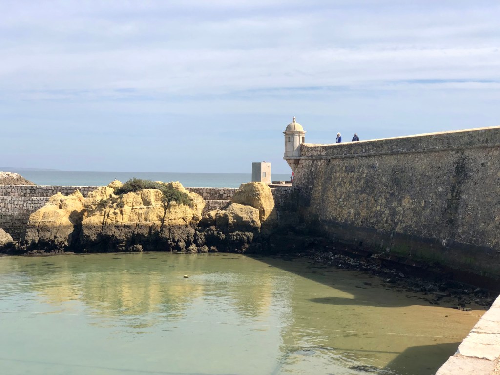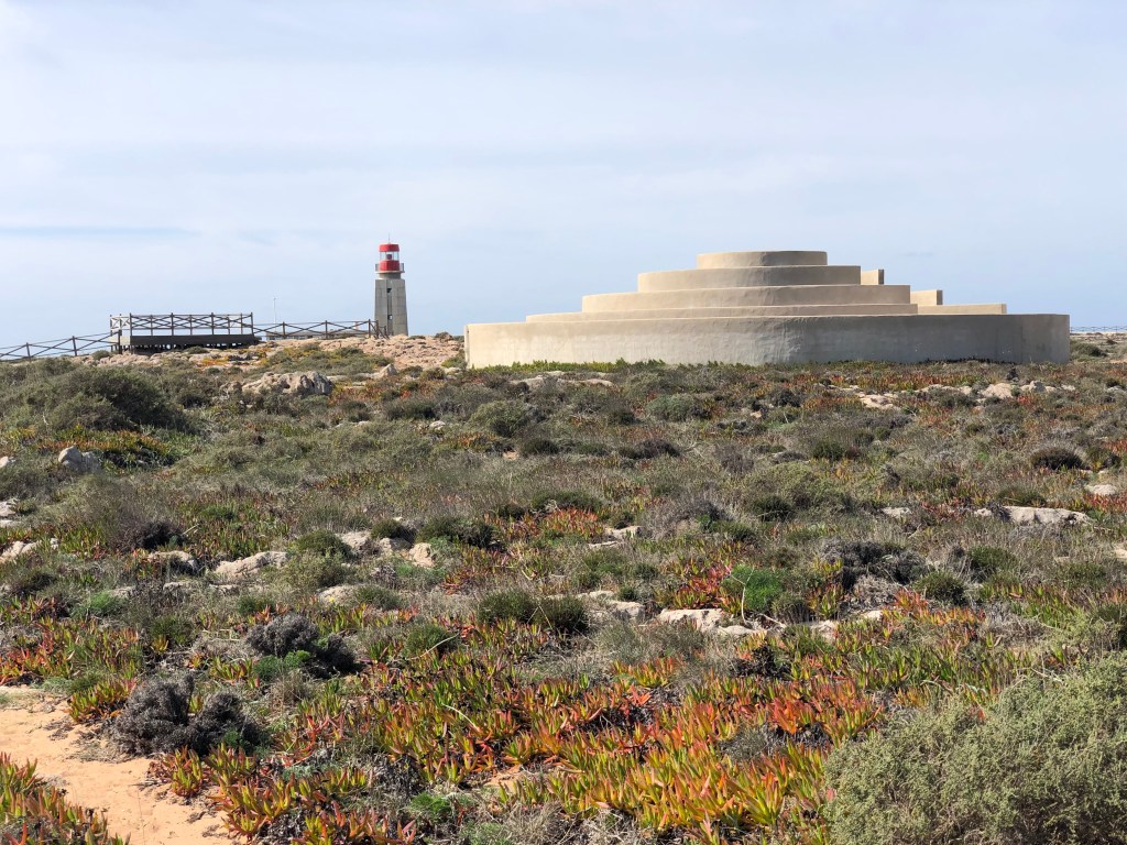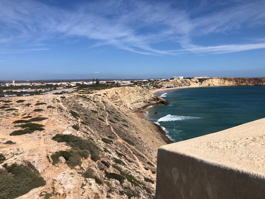 We managed to see quite a bit of the western Algarve, in between chilling at the villa and relaxing with the ”kiddies”. We went to the most SW point of Europe, namely Sagres. It was a particularly windy day even though it was warm and sunny. It is very bleak and reminded us a bit of Portland in the Uk on a windy day. The highlight was sitting in a sculpture of a maze, and listening and feeling the power of the waves coming up through a blow hole. A german couple we shared the space with exclaimed it was like a train!