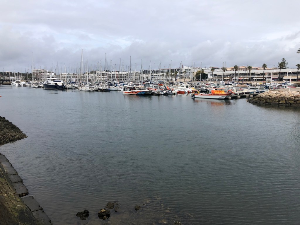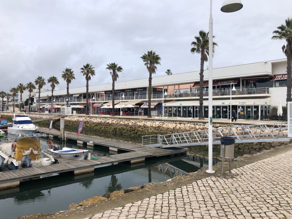 We enjoyed our walks at Alvor. Along the board walk at the western edge of the beach, as well as to the eastern edge of Alvor, along the beach with its many arches and up the cliffs to see the Grutas Baratas. A huge sink hole and cavern that you can reach by boat or swim from the beach. Also a bit further along the coast was Portimão, a town that has changed vastly since Waynes visits there while in the Navy. We did manage a morning trip there however, for a coffee and look around.