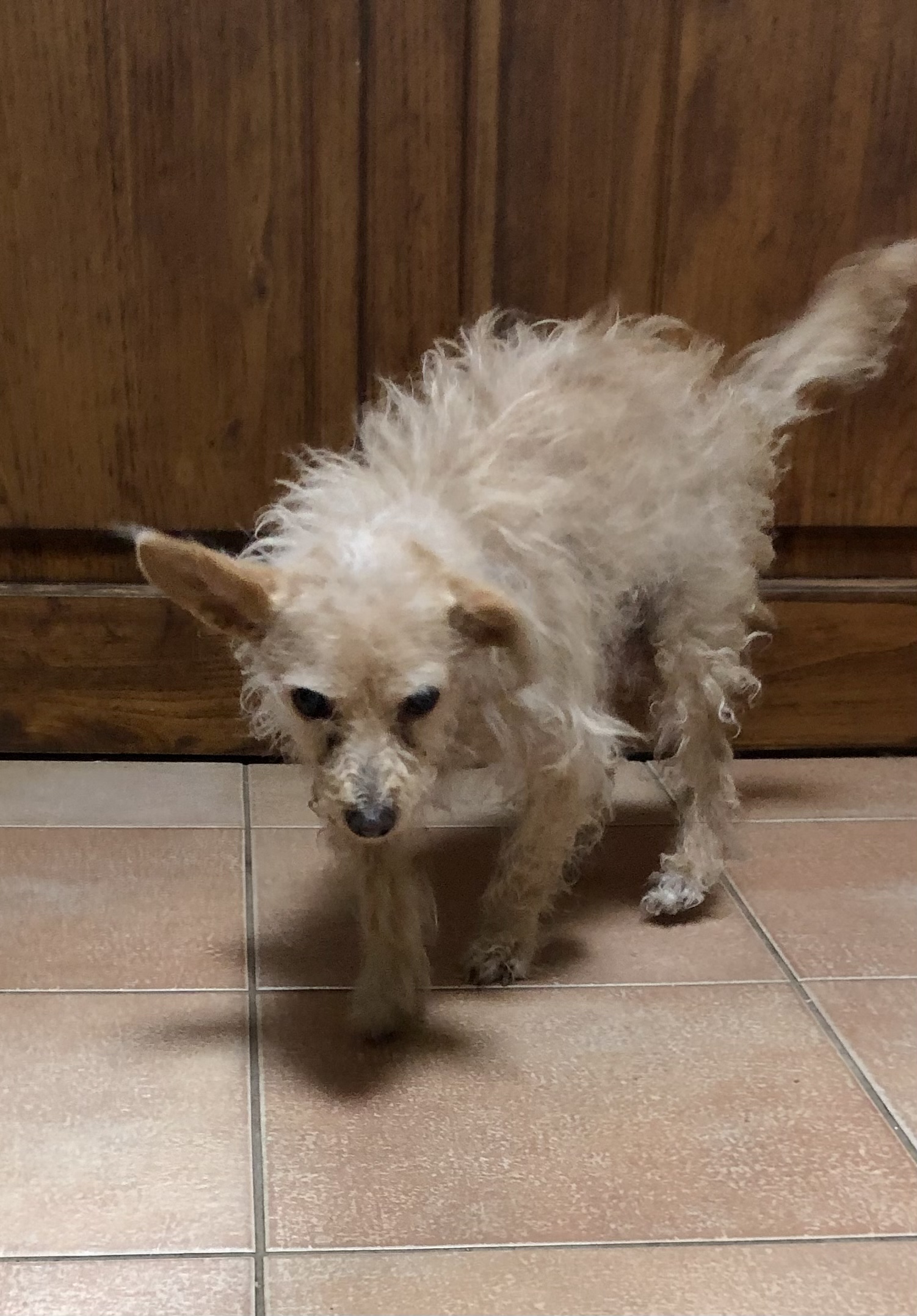 The dogs in order of size are; Tom, Monty, Olive, Benji, Roo and Bella. Bella is the oldest and suffers from Asthma and is blind so needed the most care but is such a dear. Benji has lost a leg, but is such a trooper. It was terrific of the owner to stop and rescue him from traffic that was unbelievably just driving around him in the road. They picked him up and took him to a vet, who managed to save his life but not his leg. Tom can be a little grumpy, but is not always accepted by the others, so who can blame him. He loved to be with Wayne walking around the garden chasing oranges and avocados! Roo is very protective but also cheeky trying to steal Tom or Olive’s fruit. Olive is just crazy excited most of the time and was the first to raise the alarm when the cat arrived. Monty is just the sweetest mild mannered boy and really likes to be cuddled and fussed.