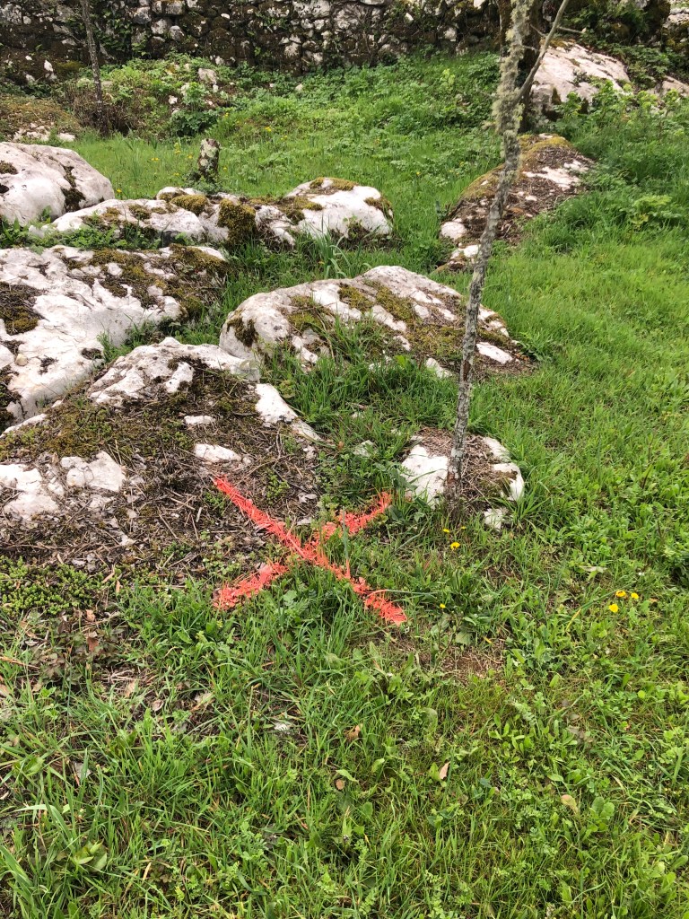 We stopped at our plot of land on the way home to check how mad the vegetation had grown and to see if we needed to get the strimmer out again. We had a great surprise to see that an engineer had been out marking the positions of the house dimensions with orange spray, so were pleased some progress had started, but we are still waiting for the technical wall to be built that provides the services needed on the site. It might just seem like just some crosses on the ground, but to us its the first steps on our journey.