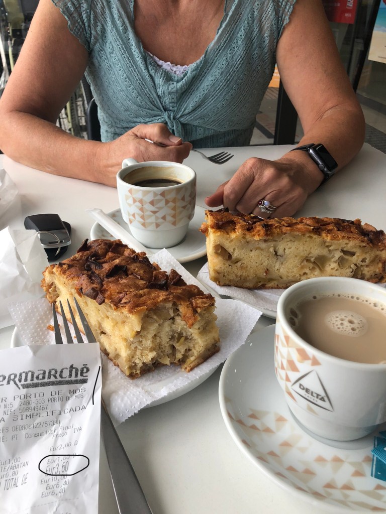 The following morning we got to have a look around the garden and see some of the surrounding land and get some comprehension on how the heat wave in Portugal had left it’s mark. We also managed a quick trip to town to pick up some supplies and grab a nice coffee and cake. We were so pleased to be back to more affordable coffees. Two (ample) portions of apple cake and coffees were only 3.60€. That’s just over £3. That doesn’t even get you a single coffee in some cafes in the UK!