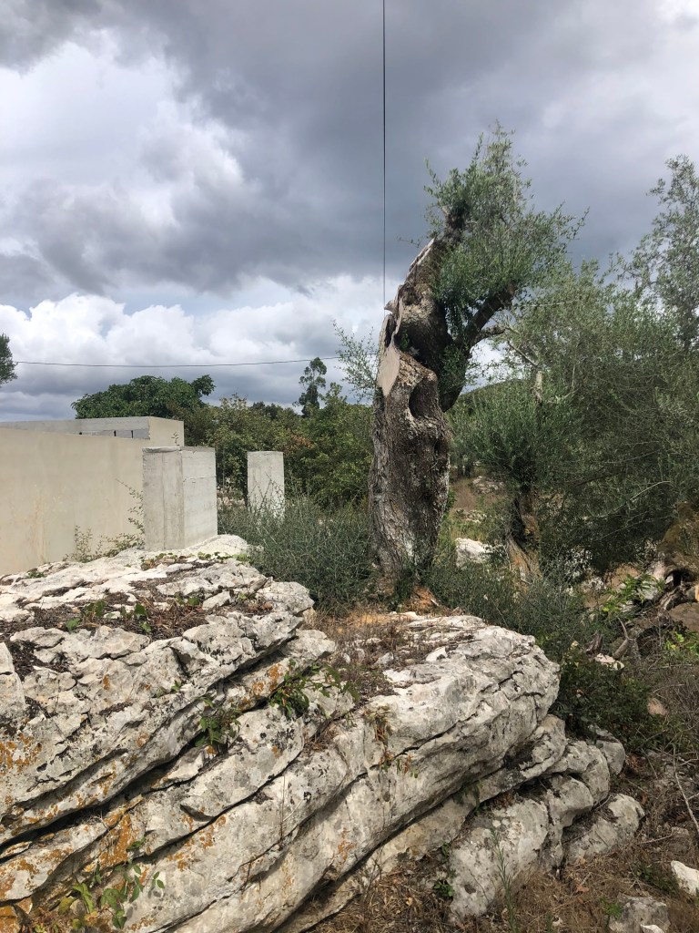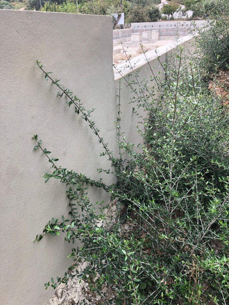 We also managed to visit the house job site to see how the heat has effected the foundation work that was completed just before we headed to the UK. We were aware that no real progress had been done, but that was due to the heat wave stopping work followed by the Portugueses holidays, but the evidence of the heat was clear. The ground was cracked and bone dry. Many of the trees were obviously struggling apart from our fig tree which is groaning with figs! There was also surprising growth of where we had cut down olive trees near the foundations. The heat or the vegetation had caused some of the rendering to crack.