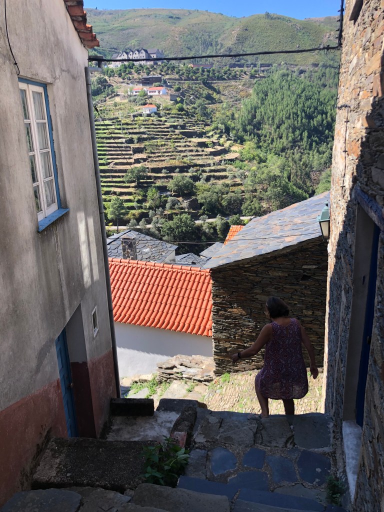 By Friday, we were both ready to get out and about again, and we decided to head into the hills to explore Piódão. This was a magical trip. A beautiful village built upon the ledges of the Serra do Açor. The village is harmoniously carved into the hillside and merges into the nature that surrounds it perfectly. Its schist houses with slate roofs, which blend with the irregular pavement of the streets and with the colours of the mountain, are connected by stairs and small alleyways, making it fun to explore. It’s a bit touristy but we’ll worth the visit, and we finished off by dipping our feet in the icy water at the river beach area.