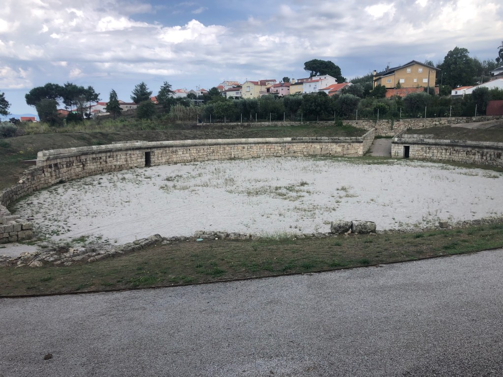 We started the week by taking a trip to Oliveira do Hospital. We needed to go to the nearest branch of NovoBanco and it was situated in that town. It was a bit of a ´spur of the moment´ decision but we set off and found the bank without any problems. The parking was challenging, but we managed to find a spot around the back of the buildings where the bank was situated. We conducted our business extremely quickly and we’re surprised at the speed of the service we received. We then had a bit of a walk-about trying to find any points of interest. There wasn’t really anything that took our fancy, so we headed to a nice cafe for coffee and a croissant and checked out Google Maps. There were two points of interest that looked promising. Both were located not far from the town and quite close to each other. The first was a Roman location with an amphitheater that had been discovered and close by was an ultra modern museum of olive oil.
