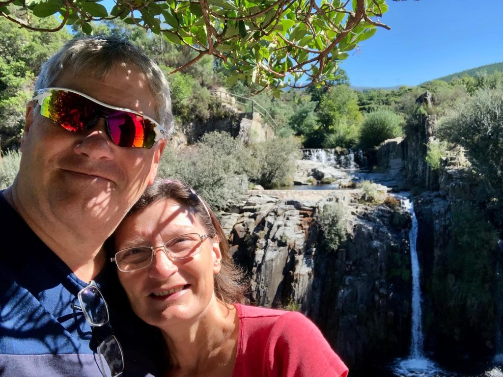 There are a couple of restaurants there, but again strangely closed even though the weather was glorious? Even weirder we’re a lot of pumpkins dotted around the place. Some were huge too. From the car park there was a hike over the hills to another more remote waterfall at Poço Fundeiro. It was quite the hike too. At one point there was a pine tree that had fallen across the path. Wayne attended to pull it out of the way. However, he had stood on the side of the sheer drop. The branch snapped and he disappeared over the edge, but Annette who had already shouted it was far enough, was in the right position to grab his arm and saved him once again! We both managed to reach the waterfall in one piece and it was quite worth the effort!