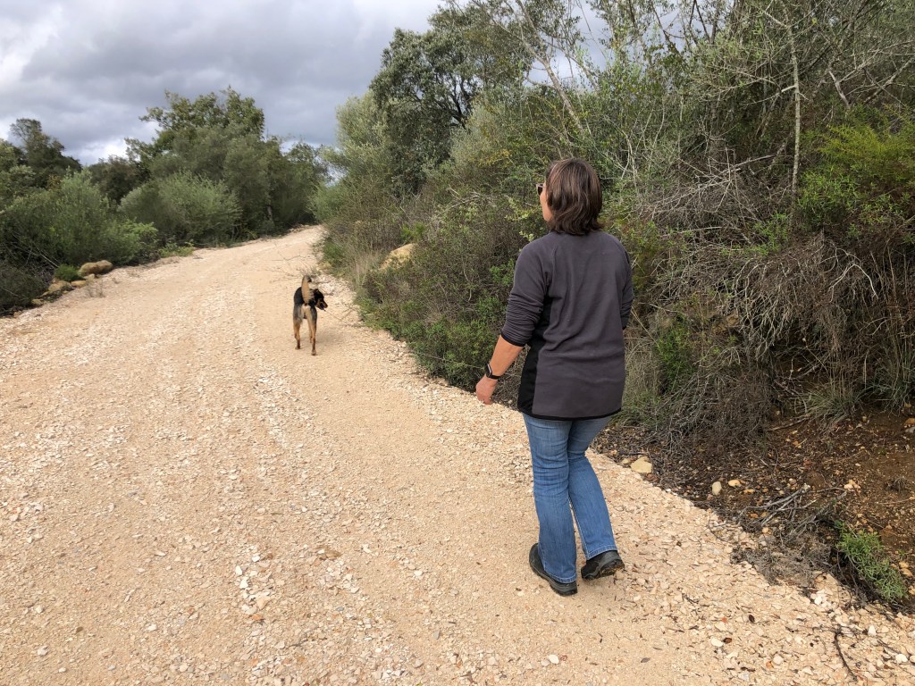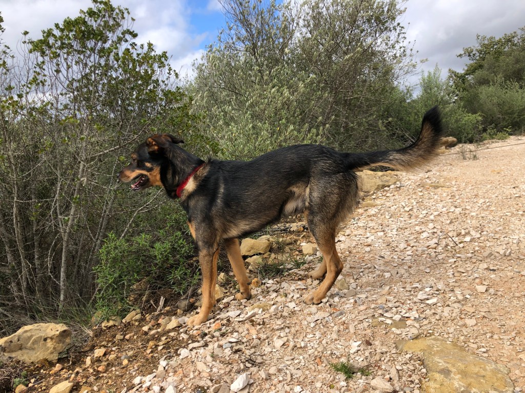 Our lovely charges for this particular sit were ‘Alfie’ & ‘Tilly’. Alfie was a spritely two year old dog who just loves human companionship. He absolutely adores his walks and really took to us keeping him on an extending lead without any issues at all. (If he decided to chase after a rabbit, we would never catch him, he is that fast, although he always comes home). He definitely had some hunting-dog traits. One particular walk he perked up, started barking and was staring into the trees on a narrow forest track we were climbing. Sure enough, a short distance away, were a family of Javali, or wild boar. The first we had seen since being in Portugal up close. They were quite large and tracking perpendicular to us and in the direction our path was leading. We quickly retreated and reversed our course and headed back to the road! Safety first!!