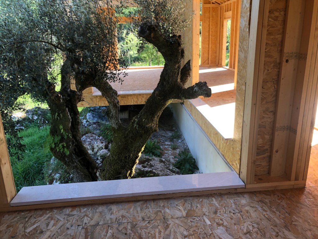 The other bit of interesting news about the house design and one that we weren’t too sure about was the solar heat gains with such large windows. A lot of portuguese houses have smaller windows and they seem to be mostly shuttered in the full sun. But for us, in the beautiful surroundings, we wanted the views to be integral to the design. Since the structure has been up, we have been walking around at different times of the day and it has been hot and sunny on many of those days. However the house does not seem to be overly warm, and is actually quite cool even without the insulation which is a result of the wood frame design. Also the windows do not let in full sunlight as the roof provides a lot of shading because of the house’s orientation and design. We will probably still need some blinds, but only in a few areas and not every window needs them.
