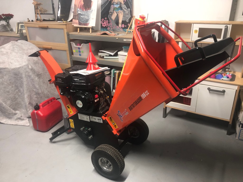 The other main shock was how overgrown the land and surrounding area had become. Once spring hits here in central Portugal, the plants just go crazy mad, and the growth is hard to keep up with. During the last year we had a lot of trees cut back and pruned, so there were heaps of year-old wood that needed to be processed and they were now all buried under vegetation. We had decided that we didn’t want to burn any longer, but to shred or chip any pruning going forward, so although we still don’t have anywhere to lock a machine away, we decided to purchase a chipper/shredder. Before we could use it, we had to pick it up. We got some funny looks when we backed the Audi up to the storeroom doors with the two attendants shaking their heads thinking it’s not going to fit into our boot. How wrong they were! An Audi A5 boot is massive with the seats dropped and we got it in fine. Luckily, a friend in the village is looking after it until we can get a lockable door to our crawl space. After getting the required oil and fuel we eventually fired it up and will be attempting to start the mulching process soon.