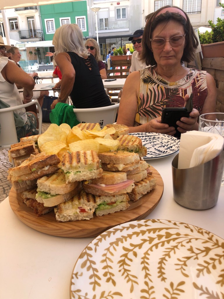 And so, off we went again, our first house sit was with some new friends we met a couple of weeks ago to see if we were a good fit for them. It turns out this couple (Americans, Vince & Cat) are really on our wave length and we look forward to spending some more time with them in the future. Their pets are all adorable and so well behaved. The two dogs are mature and so chilled. Our first afternoon was spent with Cosmo in Nazerè, down by the beach. We decided to have lunch while Vince and Cat got ready to leave. Cosmo was great to walk and enjoyed to stroll out. We ordered a shared toast lunch and were shocked by the amount that turned up! Wayne was surprised he got back up the hill after all that!
