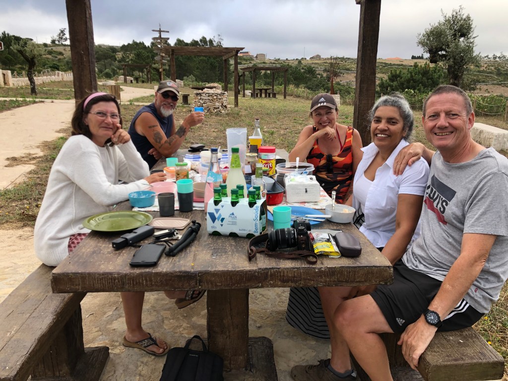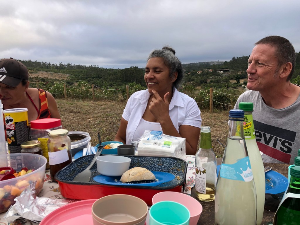 We also managed to organise a picnic with our pals from Alcaria and our soon-to-be close neighbours in Alvados. There will be many more, we are sure. The weather had been super hot leading up to that day, so we left it until the evening. In the end it turned out to be the only cloudy day of the week, but at least that meant it was cool. It is situated just off the road through the top of the hills above Alvados near a village called São Bento (a newly installed BBQ and picnic park). However, it does get exposed and the clouds eventually descended just before we finished, but we had a great time and a good laugh.