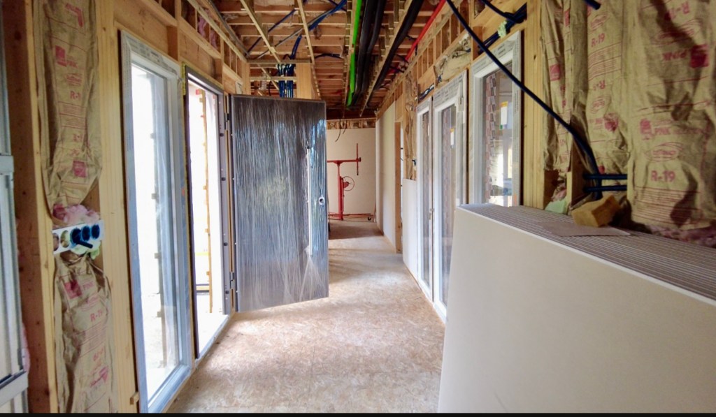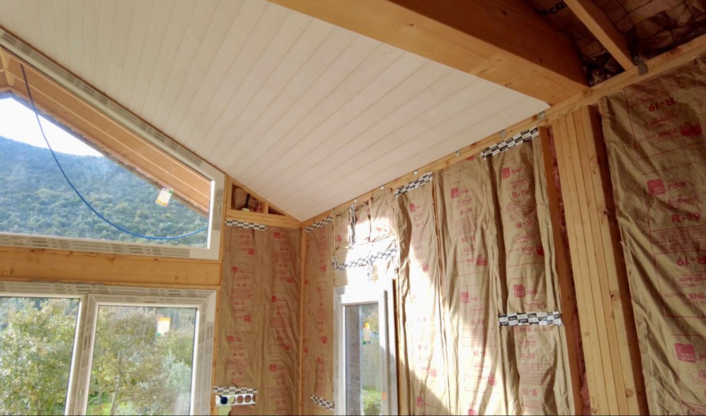 The house build continues to progress and the MVHR system first-fix ducting and equipment has been installed, work is commencing on the ceilings and walls with all the drywall being delivered and they were fitting some when we checked in last time. We also noticed that they had started putting the vapor barrier on the section of external wall around where the house wraps around the old olive tree which was good to see.