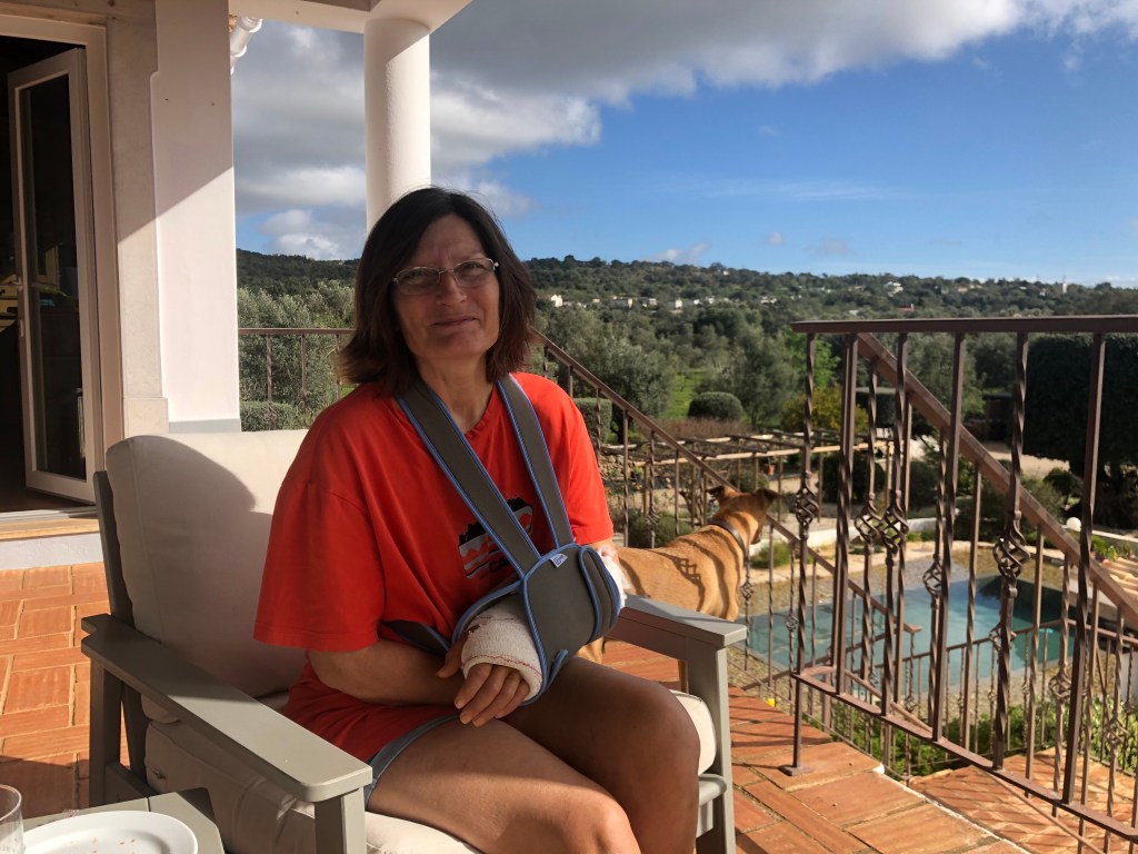 After Claire had departed, Annette had an unfortunate fall which resulted in her hospitalization in Portimão with a broken shoulder and wrist, needing surgery. She was kept there for two weeks awaiting the procedure, but that’s another story. Wayne continued on to the next sit alone.