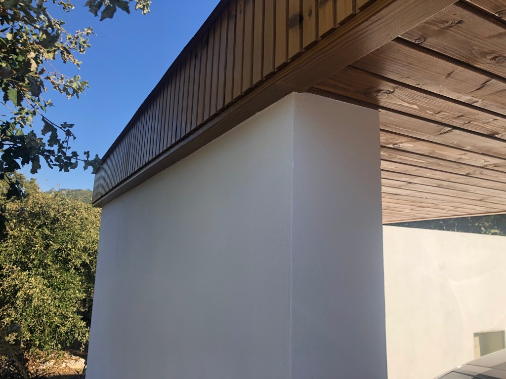 The build guys have also started to erect the decking to the pool. We think the decking needs to be completed before the pool guys can come back to finish the pool. At the front of the house, our tech-wall come front gate was completed. It was given a roof and a coat of paint. All the utility covers were added! We are now using this as our car park as we get, at least some, partial cover during the day.